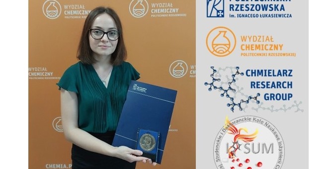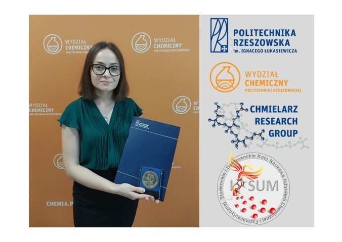Mgr inż. Agata Hochół doktorantka I roku w Szkole Doktorskiej Politechniki Rzeszowskiej im. Ignacego Łukasiewicza oraz członkini grupy badawczej Chmielarz Research Group (https://pchmielarz.v.prz.edu.pl/en/group-members), a także przewodnicząca Studenckiego i Doktoranckiego Koła Naukowego Inżynierii Chemicznej i Farmaceutycznej "IPSUM" (https://ipsum.prz.edu.pl) otrzymała Medal im. Ignacego Łukasiewicza „PRIMUS INTER PARES”. Medal ten, już po raz dwudziesty przyznany został najlepszym absolwentom z poszczególnych wydziałów Politechniki Rzeszowskiej.