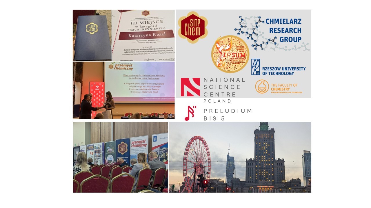Ceremonia wręczenia dyplomu miała miejsce 4 grudnia 2025 roku podczas Konferencji SITPChem „Przemysł Chemiczny” w Warszawie. Sukces ten podkreśla zarówno wysoki poziom badań prowadzonych w grupie badawczej, jak i merytoryczną wartość pracy, którą doceniło jury złożone z ekspertów środowiska chemicznego.